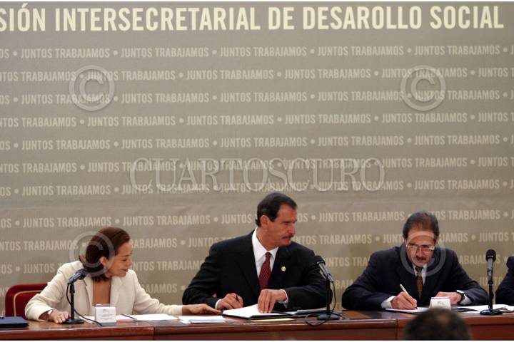 México, D.F., 26JULIO2004.- Fernando Elizondo, secretario de Energía y Rodolfo Elizondo, secretario de Turismo, durante la firma de la instalación de la comisión Intersecretarial de Desarrollo Social, realizada en los Pinos. FOTO: Moisés Pablo/CUARTOSCURO.COM