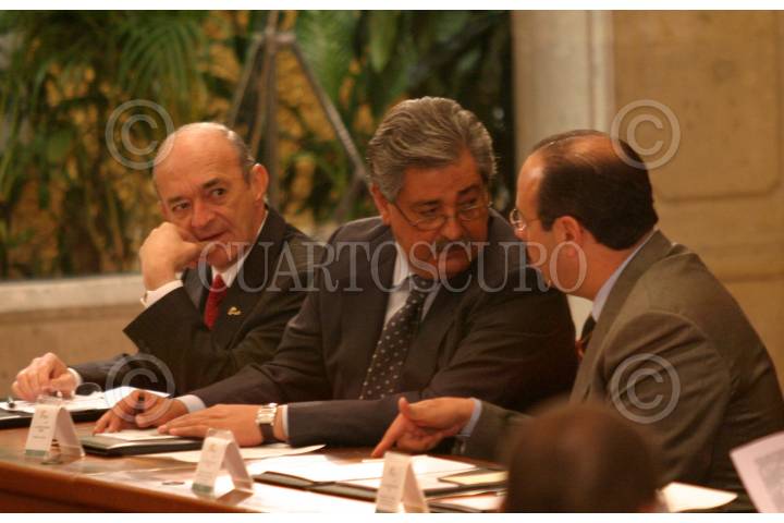 México, D.F., 26JULIO2004.- Fernando Elizondo, secretario de Energía y Rodolfo Elizondo, secretario de Turismo, durante la firma de la instalación de la comisión Intersecretarial de Desarrollo Social, realizada en los Pinos. FOTO: Moisés Pablo/CUARTOSCURO.COM