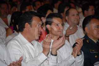 CHETUMAL, QUINTANA ROO, 05ABRIL2011.- César Horacio Duarte, gobernador de Chihuahua, Emilio Gamboa Patrón, líder de la CNOP, Carlos Salinas de Gortari, Ex-Presidente de México, Arturo Escobar Vega, coordinador de los senadores del PVEM y Jorge Emilio González, dirigente del PVEM, estuvieron presentes en la toma de protesta del gobernador Roberto Borge Angulo. FOTO: MARCO POLO GUZMAN HERNANDEZ/CUARTOSCURO.COM