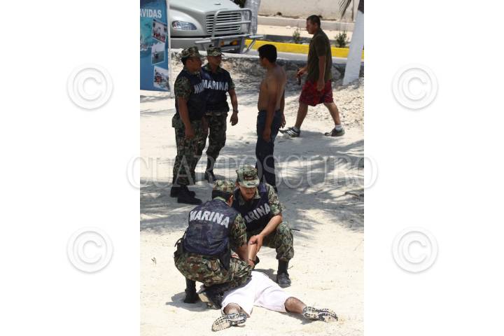 ISLA MUJERES, QUINTANA ROO, 06ABRIL2011.- La secretaria de Marina - Armada de México pondrá en marcha el Operativo Salvavidas 2011, del 15 de abril al 1ro de mayo con el objetivo de brindar seguridad en los principales destinos turísticos de mar del país. En instalaciones de la Quinta Región Naval se realizo una demostración con ejercicios simulados de las acciones que se atienden en este tipo de periodo como por ejemplo riña en la playa, rescate y búsqueda de personas ahogadas en el mar con personal, embarcación y con helicóptero. FOTO: RODOLFO ANGULO/CUARTOSCURO.COM