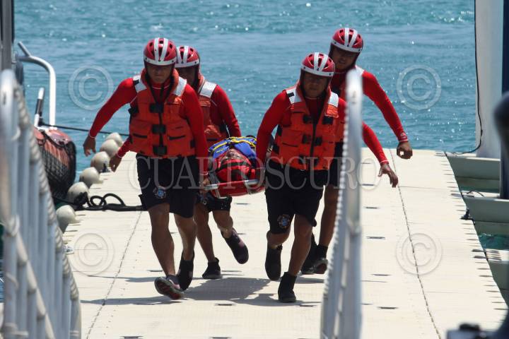 ISLA MUJERES, QUINTANA ROO, 06ABRIL2011.- La secretaria de Marina - Armada de México pondrá en marcha el Operativo Salvavidas 2011, del 15 de abril al 1ro de mayo con el objetivo de brindar seguridad en los principales destinos turísticos de mar del país. En instalaciones de la Quinta Región Naval se realizo una demostración con ejercicios simulados de las acciones que se atienden en este tipo de periodo como por ejemplo riña en la playa, rescate y búsqueda de personas ahogadas en el mar con personal, embarcación y con helicóptero. FOTO: RODOLFO ANGULO/CUARTOSCURO.COM