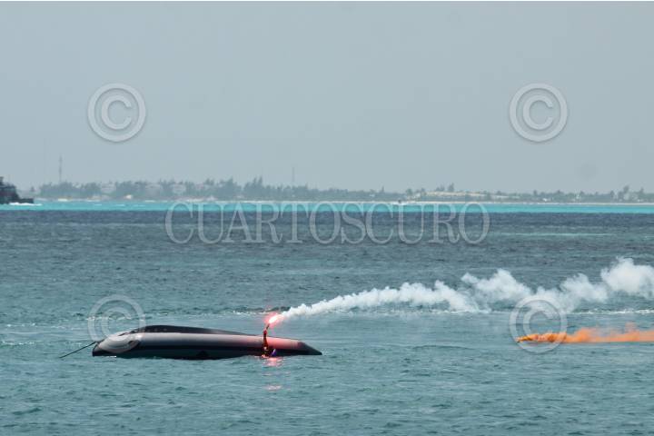 ISLA MUJERES, QUINTANA ROO, 06ABRIL2011.- La secretaria de Marina - Armada de México pondrá en marcha el Operativo Salvavidas 2011, del 15 de abril al 1ro de mayo con el objetivo de brindar seguridad en los principales destinos turísticos de mar del país. En instalaciones de la Quinta Región Naval se realizo una demostración con ejercicios simulados de las acciones que se atienden en este tipo de periodo como por ejemplo riña en la playa, rescate y búsqueda de personas ahogadas en el mar con personal, embarcación y con helicóptero. FOTO: RODOLFO ANGULO/CUARTOSCURO.COM