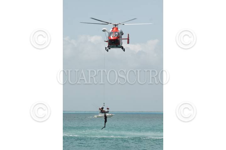 ISLA MUJERES, QUINTANA ROO, 06ABRIL2011.- La secretaria de Marina - Armada de México pondrá en marcha el Operativo Salvavidas 2011, del 15 de abril al 1ro de mayo con el objetivo de brindar seguridad en los principales destinos turísticos de mar del país. En instalaciones de la Quinta Región Naval se realizo una demostración con ejercicios simulados de las acciones que se atienden en este tipo de periodo como por ejemplo riña en la playa, rescate y búsqueda de personas ahogadas en el mar con personal, embarcación y con helicóptero. FOTO: RODOLFO ANGULO/CUARTOSCURO.COM