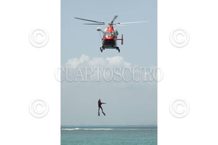 ISLA MUJERES, QUINTANA ROO, 06ABRIL2011.- La secretaria de Marina - Armada de México pondrá en marcha el Operativo Salvavidas 2011, del 15 de abril al 1ro de mayo con el objetivo de brindar seguridad en los principales destinos turísticos de mar del país. En instalaciones de la Quinta Región Naval se realizo una demostración con ejercicios simulados de las acciones que se atienden en este tipo de periodo como por ejemplo riña en la playa, rescate y búsqueda de personas ahogadas en el mar con personal, embarcación y con helicóptero. FOTO: RODOLFO ANGULO/CUARTOSCURO.COM