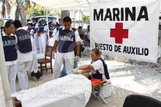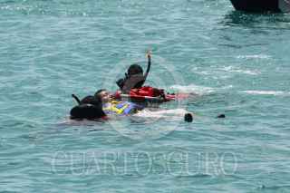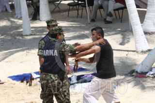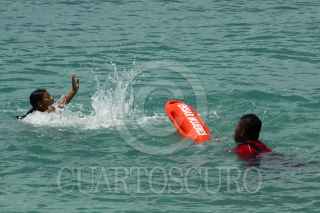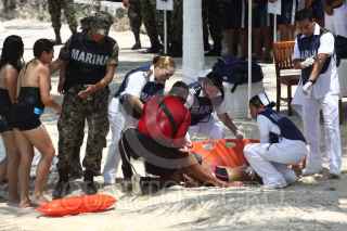 ISLA MUJERES, QUINTANA ROO, 06ABRIL2011.- La secretaria de Marina - Armada de México pondrá en marcha el Operativo Salvavidas 2011, del 15 de abril al 1ro de mayo con el objetivo de brindar seguridad en los principales destinos turísticos de mar del país. En instalaciones de la Quinta Región Naval se realizo una demostración con ejercicios simulados de las acciones que se atienden en este tipo de periodo como por ejemplo riña en la playa, rescate y búsqueda de personas ahogadas en el mar con personal, embarcación y con helicóptero. FOTO: RODOLFO ANGULO/CUARTOSCURO.COM