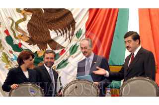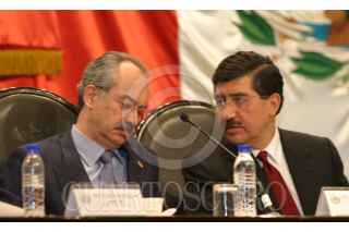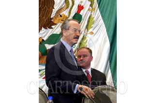 México, D.F. 26 JULIO 2004.- Francisco Gil Díaz, secretario de Hacienda a su llegada al salón verde de San Lázaro donde campareció ante la comisión de vigilancia del IPAB. FOTO: Sandra Perdomo/CUARTOSCURO.COM