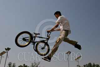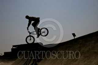 MEXICO, D.F., 06ABRIL2011.- Gerardo Aguilar, joven de 16 años de edad, estudiante de preparatoria abierta y practicante de "BMX Freestyle", recorre alrededor de 10 kilómetros diariamente para practicar este deporte extremo en la pista ubicada dentro de las cinco áreas temáticas que fueron concebidas en las 55 hectáreas saneadas -en lo que fuera la ex Refinería 18 de Marzo-, del Parque Bicentenario, sólo cuatro fueron abiertas al público. El como muchos jóvenes a falta de oportunidades laborales, dedica el tiempo libre a este pasatiempo que ha perdido popularidad en los últimos años. FOTO: MISAEL VALTIERRA/CUARTOSCURO.COM