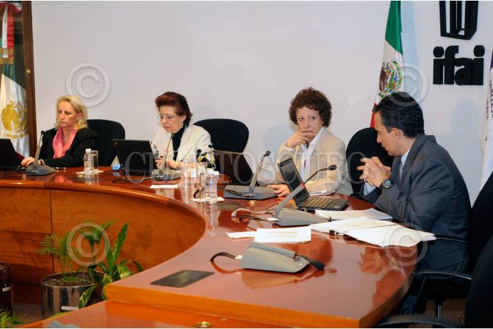 MÉXICO, D.F., 06ABRIL2011.- Jacqueline Peschard, comisionada presidenta del Instituto Federal de Acceso a la Información y Protección de Datos (IFAI) dialoga con el comisionado Ángel Trinidad al concluir la sesión pública del pleno del IFAI. FOTO: CUARTOSCURO.COM