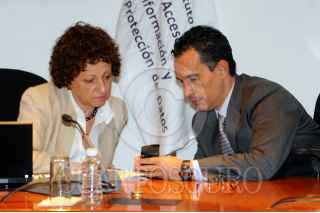 MÉXICO, D.F., 06ABRIL2011.- Jacqueline Peschard, comisionada presidenta del Instituto Federal de Acceso a la Información y Protección de Datos (IFAI) dialoga con el comisionado Ángel Trinidad al concluir la sesión pública del pleno del IFAI. FOTO: CUARTOSCURO.COM