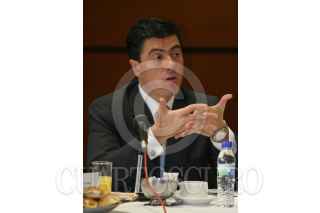 México, D.F. 26 JULIO 2004.- Gerónimo Gutierrez Hernández, sub secretario de Relaciones Exteriores de América del Norte, durante la reunión de trabajo sostenida con la comisión de población, fronteras y asuntos migratorios en realizada en San Lázaro. FOTO: Sandra Perdomo/CUARTOSCURO.COM