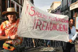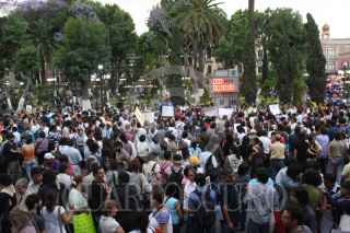 PUEBLA, PUEBLA, 06ABRIL2011.- Cientos de personas realizaron se reunieron en la Plaza de la Democracia para sumarse a la marcha contra la violencia. Con carteles, mantas y gritos la gente mostró su repudio ante la inseguridad que se vive en el país y el mal actuar de las autoridades. FOTO: FRANCISCO GUASCO/CUARTOSCURO.COM