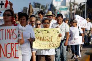 VERACRUZ, VERACRUZ, 06ABRIL2011.- Medio centenar de veracruzanos se reunieron en la Plaza de la Soberanía de este puerto para posteriormente marchar por el Boulevard Manuel Ávila Camacho y exigir un alto a la violencia que vive el país, los manifestantes gritaron consignas en contra de los grupos delictivos y de la guerra que encabeza el presidente Felipe Calderón, dicha protesta se suma a las marchas simultaneas en diferentes ciudades de la República y del mundo. FOTO: FÉLIX MÁRQUEZ/CUARTOSCURO.COM