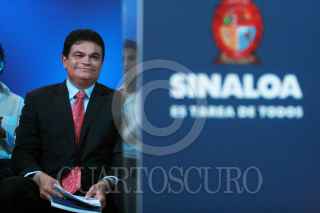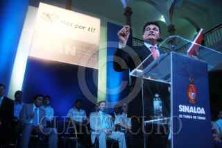 CULIACÁN, SINALOA 08ABRIL2011.- Mario Lopez Valdez, gobernador de Sinaloa, presentó el plan estatal de desarollo 2011-2016, en el Museo de Arte de Sinaloa; dicho plan plasma los proyectos a realizar durante su mandato. FOTO: RASHIDE FRIAS/CUARTOSCURO.COM