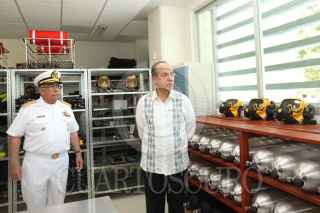 ACAPULCO, GUERRERO, 08ABRIL2011.- Felipe Calderón Hinojosa, acompañado de su esposa Margarita Zavala y del Secretario de la Marina, Francisco Saynez Mendoza, inauguraron la Escuela de Búsqueda, Rescate Buceo, Estación Naval de Búsqueda y Rescate Acapulco de la Primera Compañía de Trabajos Submarinos. FOTO: ALFREDO GUERRERO/CUARTOSCURO.COM