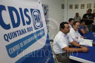 CHETUMAL, QUINTANA ROO, 09ABRIL2011.- Francisco Madero Muños, dirigente nacional del Partido Acción Nacional realiza una gira de trabajo por la entidad federativa. Madero Muñoz en compañía de Sergio Bolio , presidente estatal del mismo partido, ofrecieron una conferencia de prensa en las instalaciones del Comité Directivo Estatal. FOTO: MARCO POLO GUZMÁN HERNÁNDEZ/CUARTOSCURO.COM