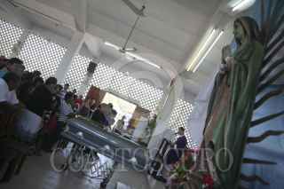 CHETUMAL, QUINTANA ROO, 10ABRIL2011.- Miguel Ángel Vera Flores, agente del Ministerio Público local es velado en la iglesia católica Santo Niño de Atocha, tras haber convalecido de en un atentado durante semana y media en el hospital regional de Mérida, Yucatán. El servidor público fue atacado en su domicilio, donde presuntos sicarios entraron a su casa y lo arrojaron de cabeza de un segundo piso a más seis metros. Cabe hacer mención que el fallecido integraba expedientes de unos lotes en Bacalar y que supuestamente quería favorecer el ex procurador local Francisco Alor Quezada. FOTO: MARCO POLO GUZMÁN HERNÁNDEZ/CUARTOSCURO.COM