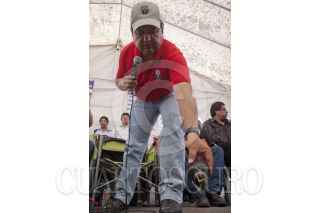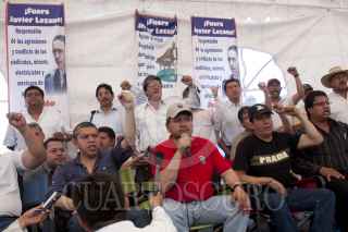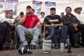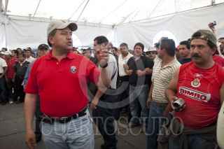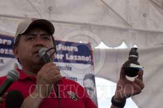 MÉXICO D.F., 11ABRIL2010.- Martín Esparza, Secretario Genral del Sindicato Mexicano de Electricistas (SME) ofreció una conferencia a los medios de comunicación donde dio a conocer que no fueron integrantes de esta organización los que lanzaron las granadas de gas lacrimógeno en el Metro Zócalo, sino que fueron integrantes de la Policía Federal y también deslindó a los electricistas de haber incendiado 4 vehículos de particulares, y de las agresiones que recibieron miembros de la prensa y de los hechos de violencia sucedidos en la movilización de esta mañana, pues según comentó se trata de filtrados. FOTO: GUILLERMO PEREA/CUARTOSCURO.COM