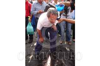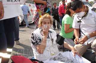 MÉXICO, D.F., 11ABRIL2011.- Un elemento de seguridad, arrojo una granada de humo en la plancha del zócalo capitalino para dispersar a los integrantes del SME que arribaron al lugar luego de protagonizar un altercado en Circuito Interior y Marina Nacional. FOTO: CUARTOSCURO.COM