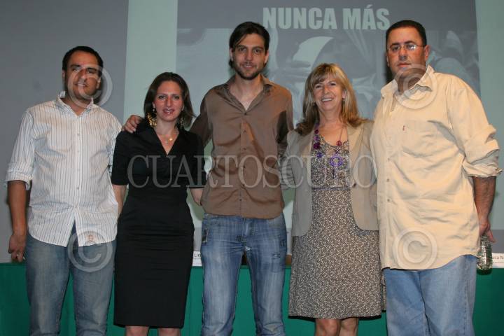 MÉXICO, D.F., 11ABRIL2011.- Juan cabandié, diputado por la ciudad autónoma de Buenos Aires; Argentina, Linda Atach (Museo Memoria y Tolerancia); Ignacio Vázquez, encargado de la curaduría y la museografía; Patricia Vaca Narvaja, Embajadora de la República de Argentina y Jacobo Dayán (MMyT). Durante la conferencia de prensa para anunciar la exposición "Nunca Más. Nunca Menos", que inaugurará el próximo miércoles 13 de abril en el Museo Memoria y Tolerancia en colaboración con la Embajada de Argentina en México. Ésto para conmemorar los 35 años del golpe de estado militar en Argentina. FOTO: MISAEL VALTIERRA/CUARTOSCURO.COM