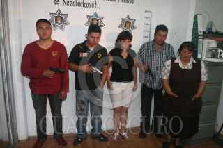 NEZAHUALCOYOTL, ESTADO DE MÉXICO, 12ABRIL2011.- La policia municipal capturó esta madrugada a miembros de una banda que mantuvieron retenidos a lOS uniformados de la patrulla PM003 en una casa de seguridad en la colonia Valle de Aragón primera sección. Los nombres de los detenidos son Jairo Esau Aguilar Lobato 21,Julio López Santiago 19, Liliana Trejo Campos 18,Nilson Esau Aguilar Reyes 48 y Ofelia Elsa Campos Rojas 48 FOTO: LM ACEVEDO/CUARTOSCURO.COM