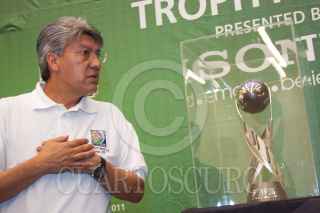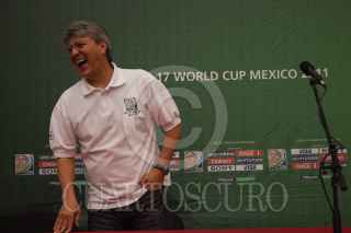 QUERÉTARO, QUERÉTARO, 12ABRIL2011.- La copa del Mundial de futbol Sub 17, visitó la capital del estado que será sede de la justa mundialista. En la presentación, estuvo el mexicano Jesús "Chucho" Ramírez, ex técnico mundialista que ha dirigido también al equipo de primera división Club América. FOTO: DEMIAN CHÁVEZ/CUARTOSCURO.COM