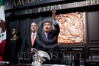 MÉXICO, D.F., 12ABRIL2011.- El Águila del Senado de la República emprendió su vuelo hacia sus nuevas instalaciones ubicadas en Reforma e Insurgentes, mañana se sesionará por primera vez en aquel inmueble. FOTO: MOISÉS PABLO/CUARTOSCURO.COM