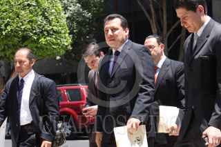 MÉXICO, D.F., 13ABRIL2011.- Raul Plascencia Villanueva, Presidente Nacional de la Comisión de Derechos Humanos, en compañía de cuatro visitadores generales, acudieron a las instalaciones de la Procuraduría General de la República a presentar una demanda por la detención que sufrió uno de sus visitadores en Tijuana, Baja California cuando acudió a proteger a un migrante que minutos antes había sido repatriado a los Estados Unidos. FOTO: ENRIQUE ORDÓÑEZ/CUARTOSCURO.COM