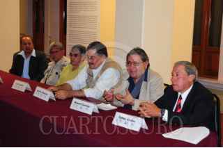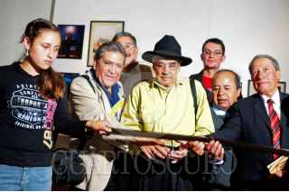 ZACATECAS, ZAC.13ABRIL2011.- Dentro del marco del Quinto Aniversario la Fototeca de Zacatecas Pedro Valtierra se inauguró esta noche la exposición colectiva de fotografía FOTÓGRAFOS DE PRENSA ZACATECANA, ENTRE DOS ÉPOCAS (1964–2011) integrada por 42 imágenes, de Carlos Rodríguez, José Campos, Juan A. Ramírez, Manuel Castaño, Manuel Cornejo, Rafael Ávalos y Rogelio Martínez. La muestra fue inaugurada por el Maestro Sergio Mayorga, subdirector de la Fototeca de Zacatecas, y los autores, acompañados por más de 200 personas entre periodistas, público en general y amigos. Previo al evento central los expositores platicaron sus experiencias como fotoperiodistas ante decenas de jóvenes aficionados a la creación de imágenes. Sergio Mayorga dijo “que la exposición es un homenaje que les hace la Fototeca, en reconocimiento a su labor y la agudeza crítica con la que han realizado, a lo largo de más de cuatro décadas de trabajo, un oficio que nos brinda un acervo visual de enorme valor histórico y la prueba de ello están colgados de estás paredes”. FOTO: GABY MARCIAL REYES/ESPECIAL CUARTOSCURO.COM