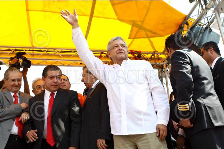 MÉXICO, D.F., 14ABRIL2011.- Andres Manuel López Obrador, aspirante a la presidencia de México durante un mitin a las afueras de la Cámara de Diputados en protesta a la Reforma Laboral que se discute este día en el pleno del salón de sesiones. FOTO: RODOLFO ANGULO/CUARTOSCURO.COM