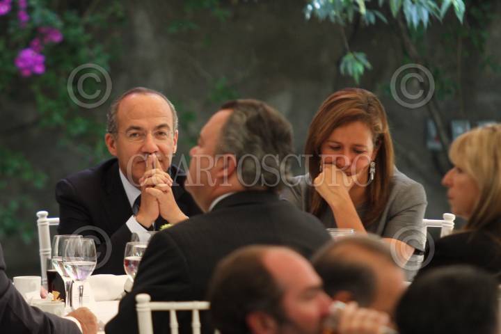 MÉXICO, D.F., 14ABRIL2011.- El presidente Felipe Calderón durante una comida con representantes de sectores empresariales de México y Argentina en la hondonada de la residencia Oficial de Los Pinos. FOTO: RODOLFO ANGULO/CUARTOSCURO.COM