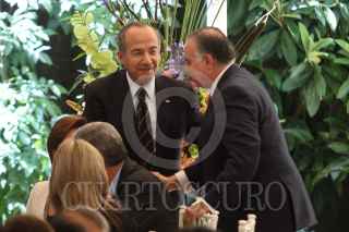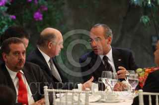 MÉXICO, D.F., 14ABRIL2011.- El presidente Felipe Calderón durante una comida con representantes de sectores empresariales de México y Argentina en la hondonada de la residencia Oficial de Los Pinos. FOTO: RODOLFO ANGULO/CUARTOSCURO.COM