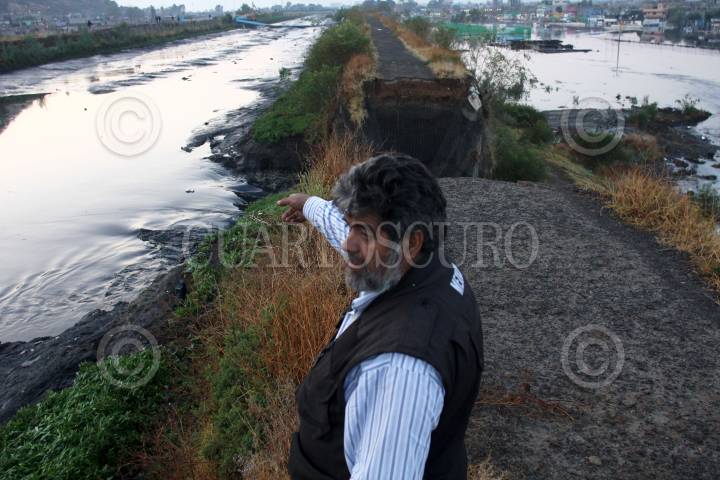 CHALCO, ESTADO DE MÉXICO, 17ABRIL2011.- Alrededor de la 02:00 A.M. nuevamente se registró una fisura en los muros del canal de aguas negras “La compañía”, misma que inundó ambos sentidos de la autopista México-Puebla y viviendas de la colonia San Isidro. Hace dos meses el presidente Felipe Calderón y el gobernador Enrique Peña Nieto inauguraron la planta de bombeo “Túnel Profundo Río La Compañía -La Caldera” y prometieron que ya no habría más inundaciones en la zona. FOTO: SAÚL LÓPEZ/CUARTOSCURO.COM