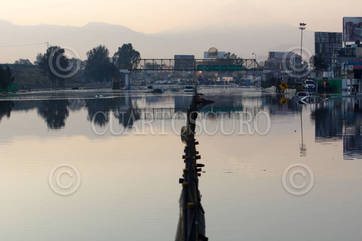 CHALCO, ESTADO DE MÉXICO, 17ABRIL2011.- Alrededor de la 02:00 A.M. nuevamente se registró una fisura en los muros del canal de aguas negras “La compañía”, misma que inundó ambos sentidos de la autopista México-Puebla y viviendas de la colonia San Isidro. Hace dos meses el presidente Felipe Calderón y el gobernador Enrique Peña Nieto inauguraron la planta de bombeo “Túnel Profundo Río La Compañía -La Caldera” y prometieron que ya no habría más inundaciones en la zona. FOTO: SAÚL LÓPEZ/CUARTOSCURO.COM