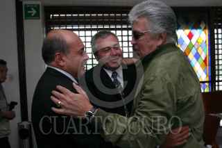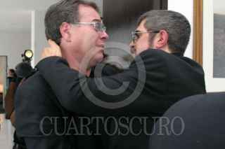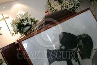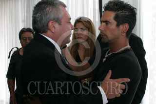 México, D.F., 07AGOSTO2004.- Ismael Rodríguez, director de cine de la época de oro, murió este día. Ismael Rodríguez y Cuitlahuac Rodríguez, hijos del director saludan a Alberto Vázquez, cantante y amigo de la familia, durante los servicios funerarios. FOTO: Moisés Pablo/CUARTOSCURO.COM