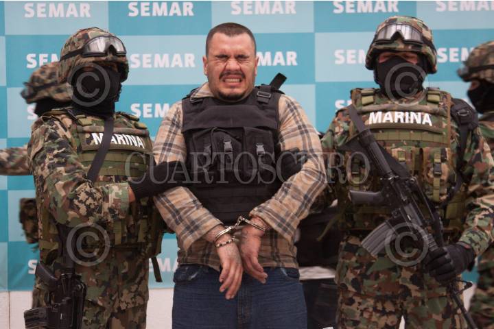 MÉXICO, D.F., 17ABRIL2011.- La Secretaría de Marina Armada de México presentó a Omar Martín Estrada alias " el Kilo" por su presunta resposabilidad intelectual del asesinato de los 72 migrantes así como de los 145 cadáveres encontrados en fosas clandestinas en el municipio de San Fernando, Tamaulipas- Además la Secretaría de Marina lo indentifica como líder de una célula del grupo delictivo "Zetas" que opera en la entidad. FOTO: IVÁN STEPHENS/CUARTOSCURO.COM