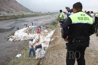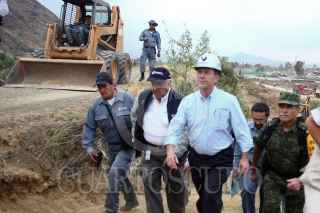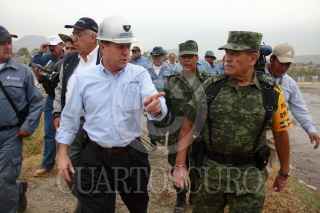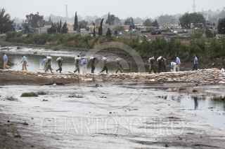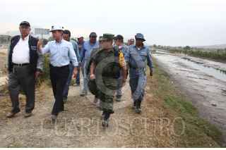 CHALCO, ESTADO DE MÉXICO, 18ABRIL2011.- El titular de CONAGUA, José Luis Lueje Tamargo, acompañado de autoridades de la 37 zona militar de Temamatla, realizaron un recorrido por la zona afectada del canal de aguas negras La Compañía, donde valuaron el tiempo y personal para reparar el muro afectado. FOTO: SAÚL LÓPEZ/CUARTOSCURO.COM FOTO: SAÚL LÓPEZ/CUARTOSCURO.COM