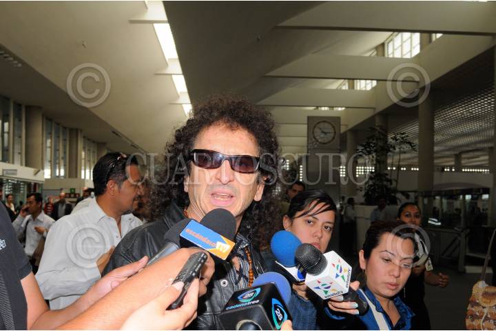MÉXICO, D.F., 20ABRIL2011.- Alex Lora, líder de la banda de rock El Tri, llega al aeropuerto capitalino para viajar a Isla del Padre, Texas, para ofrecer un concierto este fin de semana. FOTO: FRANCISCO RODRIGUEZ/CUARTOSCURO.COM
