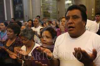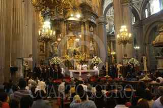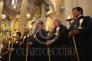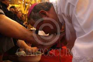 PUEBLA, PUEBLA, 21ABRIL2011.- El arzobispo de Puebla, Victor Sánchez Espinosa, encabezó la ceremonia de lavatorio de pies, en la cual representan las enseñanzas de Jesús antes de entregarse voluntariamente a su pasión. FOTO: FRANCISCO GUASCO/CUARTOSCURO.COM