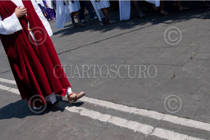 MÉXICO, D.F., 21ABRIL2011.- Jesús de Nazaret, interpretado por Gilberto Morales Pedraza, durante la procesión por los ocho barrios de Iztapalapa (recorrido que se asocia a la visita de las 7 casas). Ésto forma parte de las festividades de Semana Santa en ésta delegación. FOTO: MISAEL VALTIERRA/CUARTOSCURO.COM
