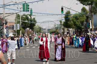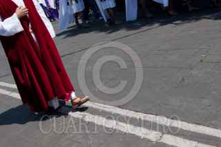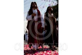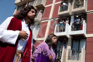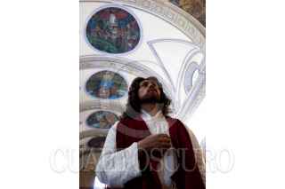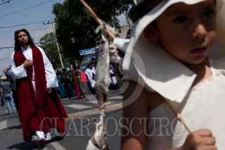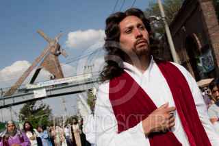 MÉXICO, D.F., 21ABRIL2011.- Jesús de Nazaret, interpretado por Gilberto Morales Pedraza, durante la procesión por los ocho barrios de Iztapalapa (recorrido que se asocia a la visita de las 7 casas). Ésto forma parte de las festividades de Semana Santa en ésta delegación. FOTO: MISAEL VALTIERRA/CUARTOSCURO.COM
