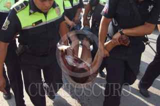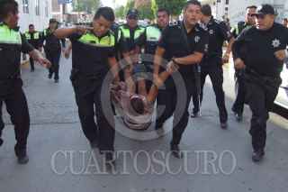 SAN MIGUEL TOTOLCINGO, ESTADO DE MÉXICO, 21ABRIL2011.- En el municipio San Miguel Totolcingo, Estado de México se viven momentos de tensión por un intento de linchamiento. Dos sujetos que intentaron asaltar un autobús de la línea México-Teotihuacán, fueron sometidos por los pasajeros y otros pobladores que se dieron cuenta de los hechos. De inmediato fueron llevados al kiosco del pueblo para ser linchados. Sin embargo, las autoridades estatales han intervenido para rescatar a los hombres que fueron retenidos por los pobladores. Los habitantes han cerrado la carretera federal Texcoco-Lechería; se registran asentamientos viales. FOTO: SAÚL LÓPEZ/CUARTOSCURO.COM