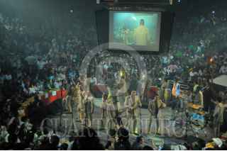 TEXCOCO, ESTADO DE MEXICO, 22ABRIL2011.- La Arrolladora Banda El Limón, se presentó ayer durante la actuación que ofrecieron en el Palenque de la XXX Feria del Caballo en Texcoco. FOTO: FRANCISCO RODRIGUEZ/CUARTOSCURO.COM