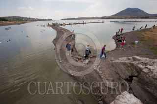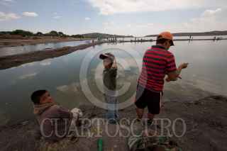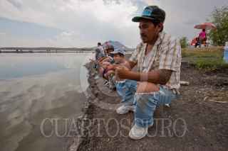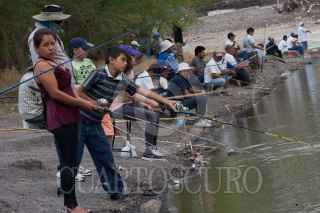 QUERÉTARO, QUERÉTARO, 23ABRIL2011.- Lugareños de la comunidad de Santa Rosa Jauregui acuden a la Presa Santa Catarina a disfrutar del sábado de Gloria como parte de las actividades vacacionales de la Samana Santa. En esta presa realizan pesca de mojarra como parte del deporte pesquero, aunque también se comercializa el producto. Esta presa ha sufrido una merma de casi el 50 por ciento de su capacidad debido a la sequía y las altas temperaturas que de presentan en la mayor parte de la república. FOTO: DEMIAN CHÁVEZ/CUARTOSCURO.COM