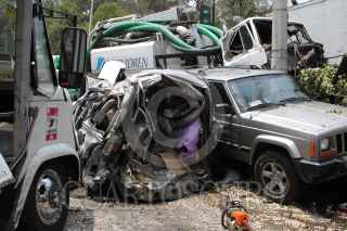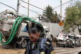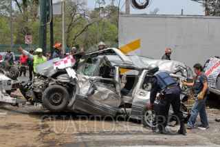MÉXICO, D.F., 25ABRIL2011.- Un choque entre un camión de des-azolve con un microbus y cinco vehículos particulares dejo como saldo al menos 23 personas lesionadas sobre la avenida constituyentes a la altura de la Residencia Oficial de los Pinos donde llegaron elementos del ERUM, Bomberos y policías para resguardar la zona. FOTO: ENRIQUE ORDÓÑEZ/CUARTOSCURO.COM
