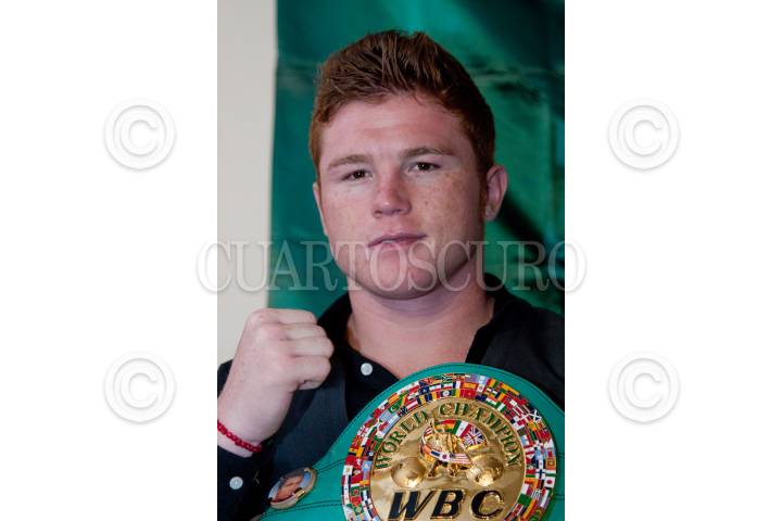 MÉXICO, D.F., 26ABRIL2011.- Saúl 'Canelo' Álvarez, boxeador mexicano, anunció que estrenará el título súperwelter del Consejo Mundial de Boxeo (CMB) contra el inglés Ryan Rhodes, el 18 de junio en la Arena 'Vicente Fernandez' de Tlajomulco, Jalisco, México. FOTO: MISAEL VALTIERRA/CUARTOSCURO.COM