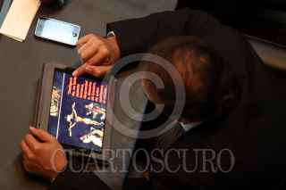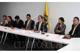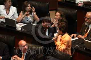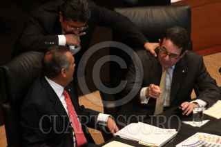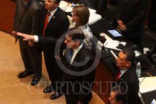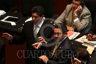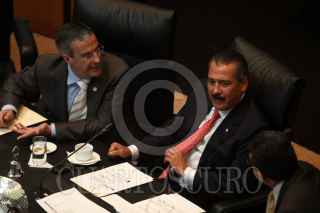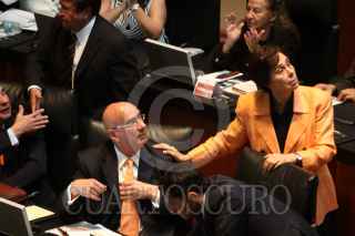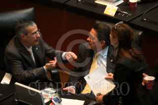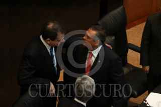 MÉXICO, D.F., 26ABRIL2011.- Manuel Ramos Francia saluda al senador Manlio Fabio Beltrones después de su ratificación como subgobernador del Banco de México durante la sesión ordinaria en el Senado de la República. FOTO: RODOLFO ANGULO/CUARTOSCURO.COM