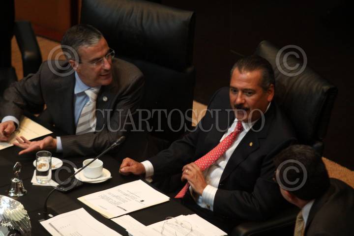 MÉXICO, D.F., 26ABRIL2011.- Manuel Ramos Francia saluda al senador Manlio Fabio Beltrones después de su ratificación como subgobernador del Banco de México durante la sesión ordinaria en el Senado de la República. FOTO: RODOLFO ANGULO/CUARTOSCURO.COM