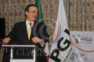 MÉXICO, D.F., 27ABRIL2011.- Marcelo Ebrard Casaubon, Jefe de Gobierno Capitalino durante la presentación del Código de Ética para los servidores públicos de la Procuraduria General de Justicia Capitalina. FOTO: ENRIQUE ORDÓÑEZ/CUARTOSCURO.COM