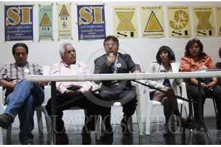 MÉXICO, D.F., 27ABRIL2011.- José Refurgio Palma, Gregorio Flores Laredo, José Castillo Labra, candidato de la planilla Si Incluyente para la Secretaría General del STUNAM; Leticia Arrega Morita y María Teresa Rodríguez, anunciaron que impugnarán los resultados en las pasadas elecciones en la UNAM debido a irregularidades que detectaron durante el proceso. FOTO: IVAN STEPHENS/CUARTOSCURO.COM