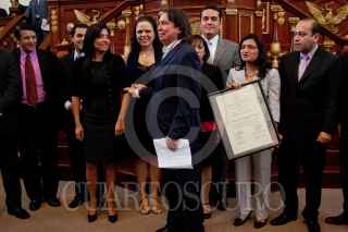 MÉXICO, D.F., 27ABRIL2011.- El cronista Armando Ramírez, fue condecorado con la medalla al mérito ciudadano en la Asamblea Legislativa del DF. FOTO: MOISÉS PABLO/CUARTOSCURO.COM